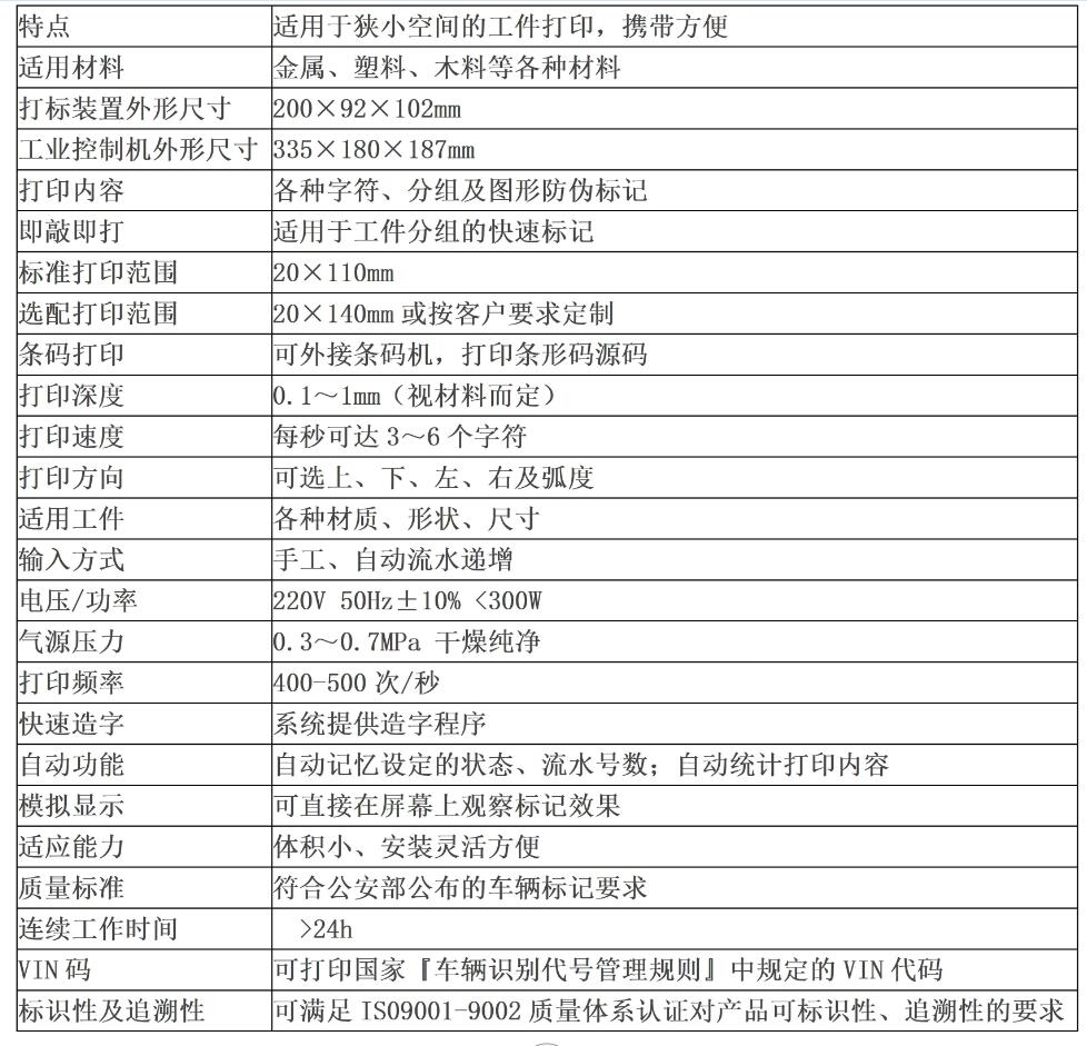 便攜式打標(biāo)機是把打印機頭放到工件上去工作,機頭設(shè)計輕便,便于攜帶,對于不易搬動的大型工件輕松實現(xiàn)打標(biāo),適用于車架、發(fā)動機、鋼軌、鋼瓶等大工件的標(biāo)記。